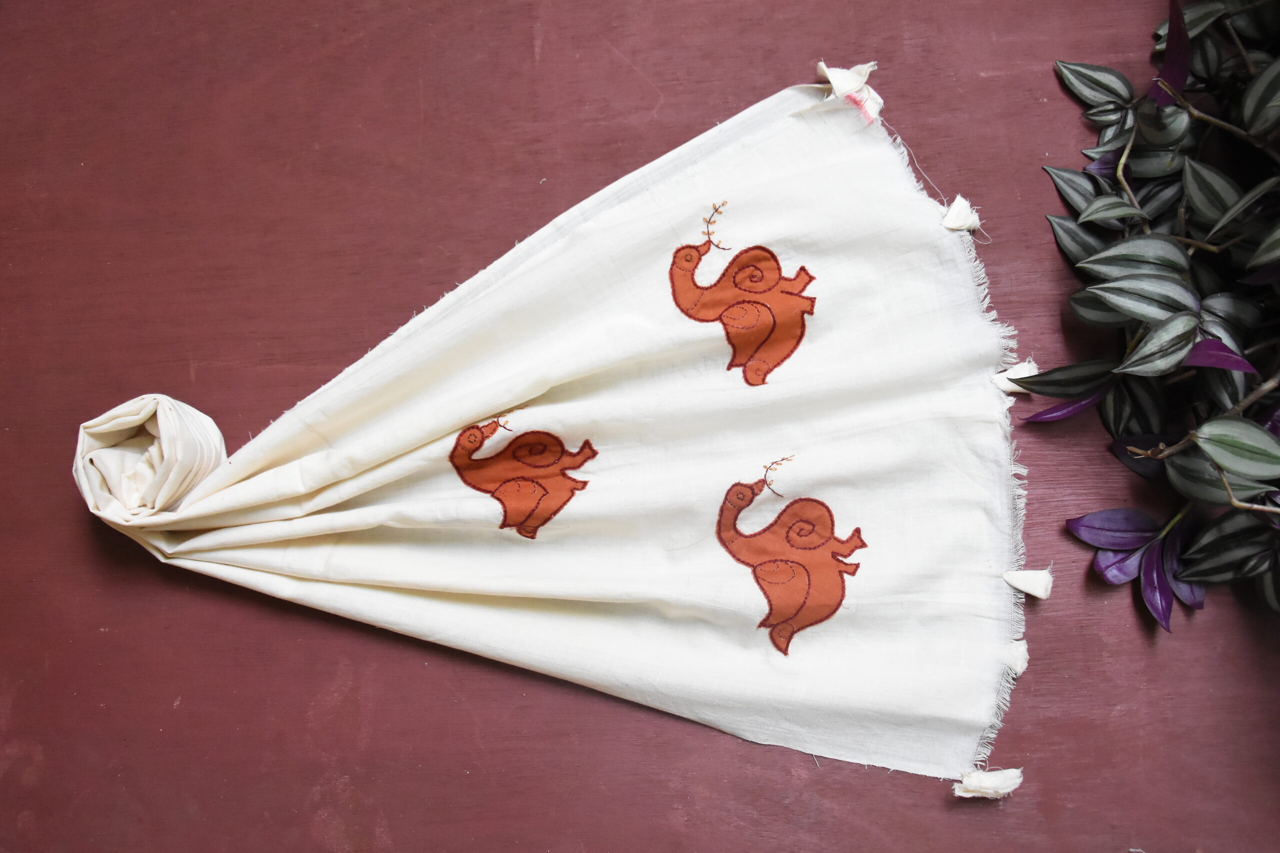 White organic cotton-hand embroidered Odisha appliqué craft stole 06-Pankaja Sethi