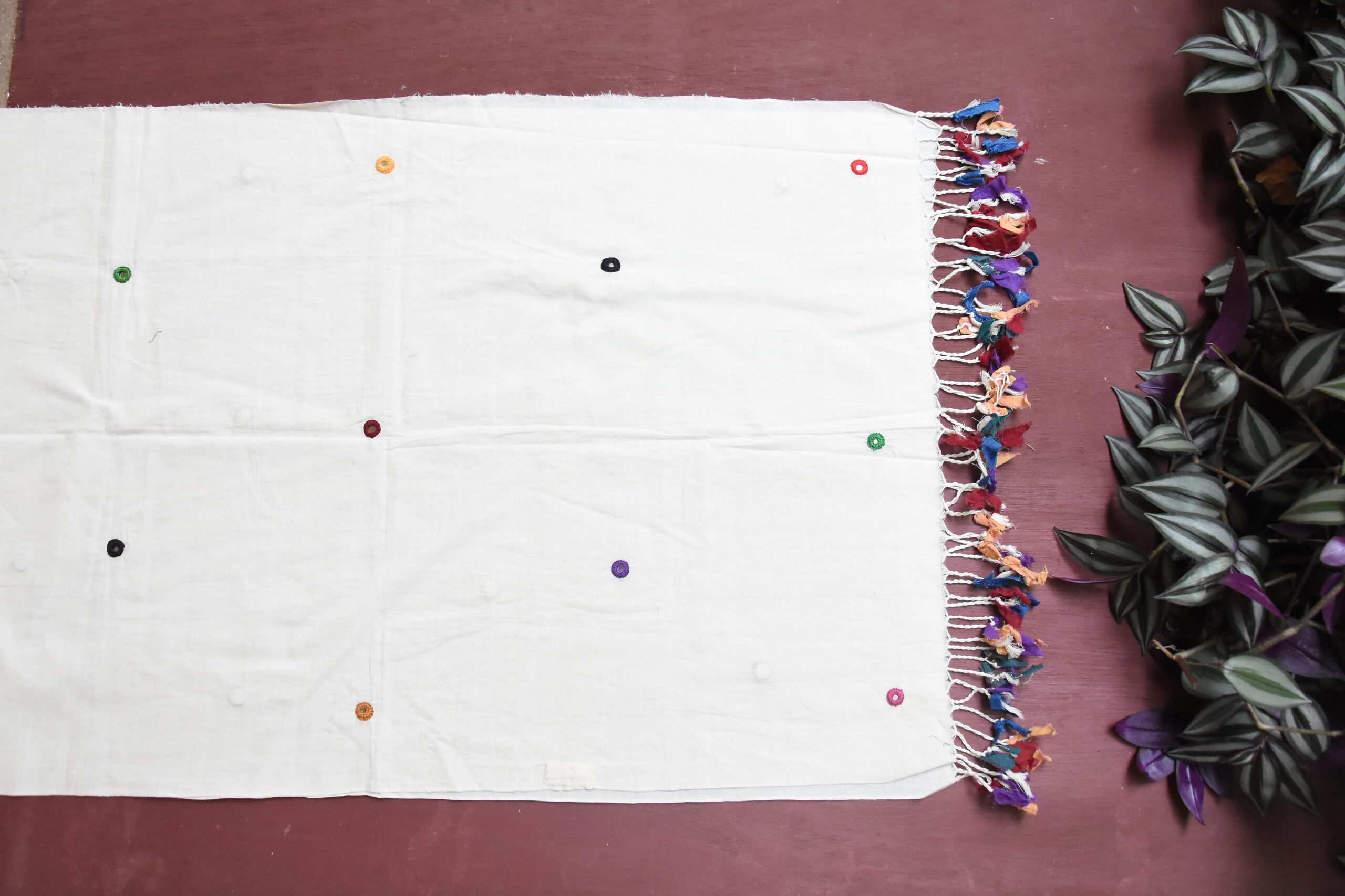 White organic cotton-hand embroidered Odisha appliqué craft stole 07-Pankaja Sethi