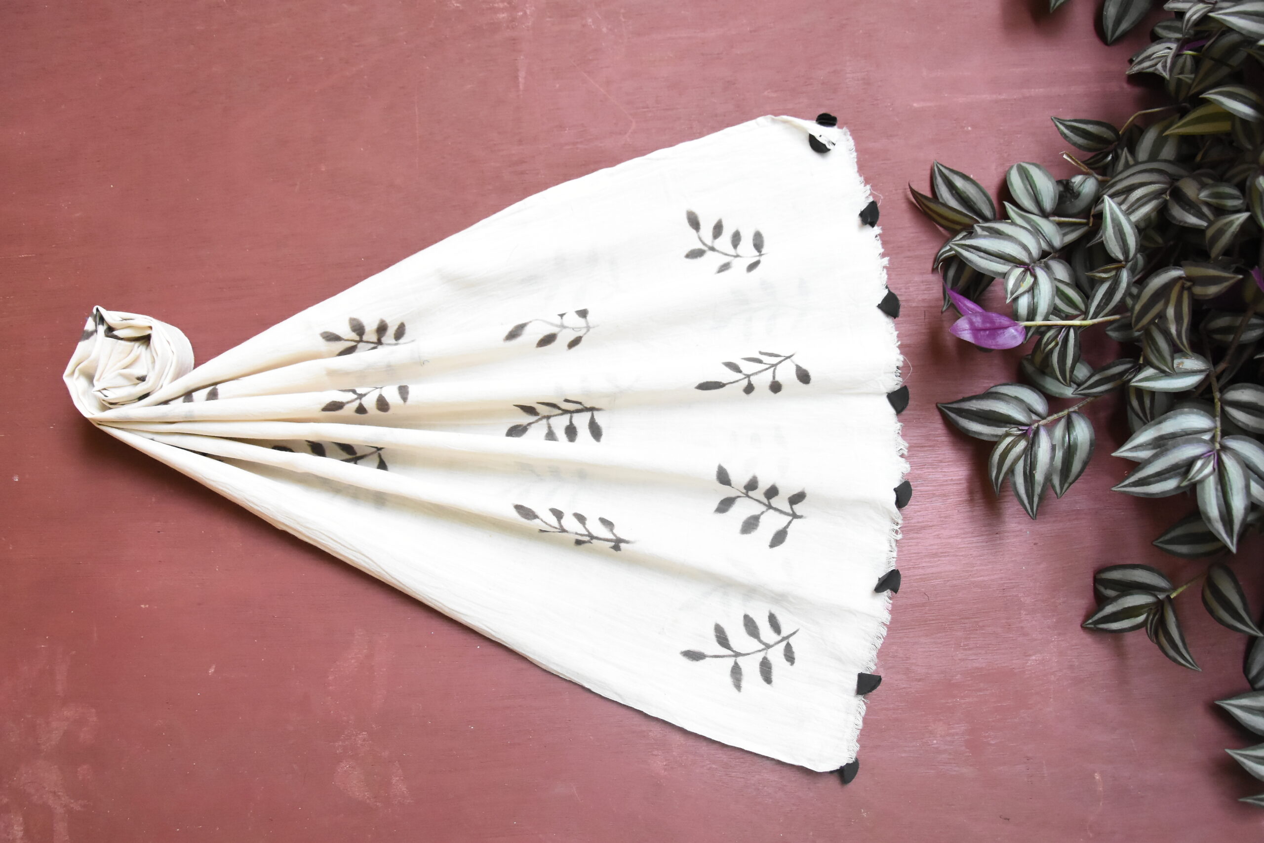 Wrap yourself in a soft white organic cotton stole, hand painted by the women artisans of Pankaja Sethi Studio, celebrating slow and sustainable textiles. The base cloth is made with cotton in Odisha, located in Eastern India. This is an innovative design with aesthetic blend of materials. This contemporary motif is inspired from textures of nature using natural dyes. Pankaja Sethi textiles resonates craftsmanship and solidarity with craft community.